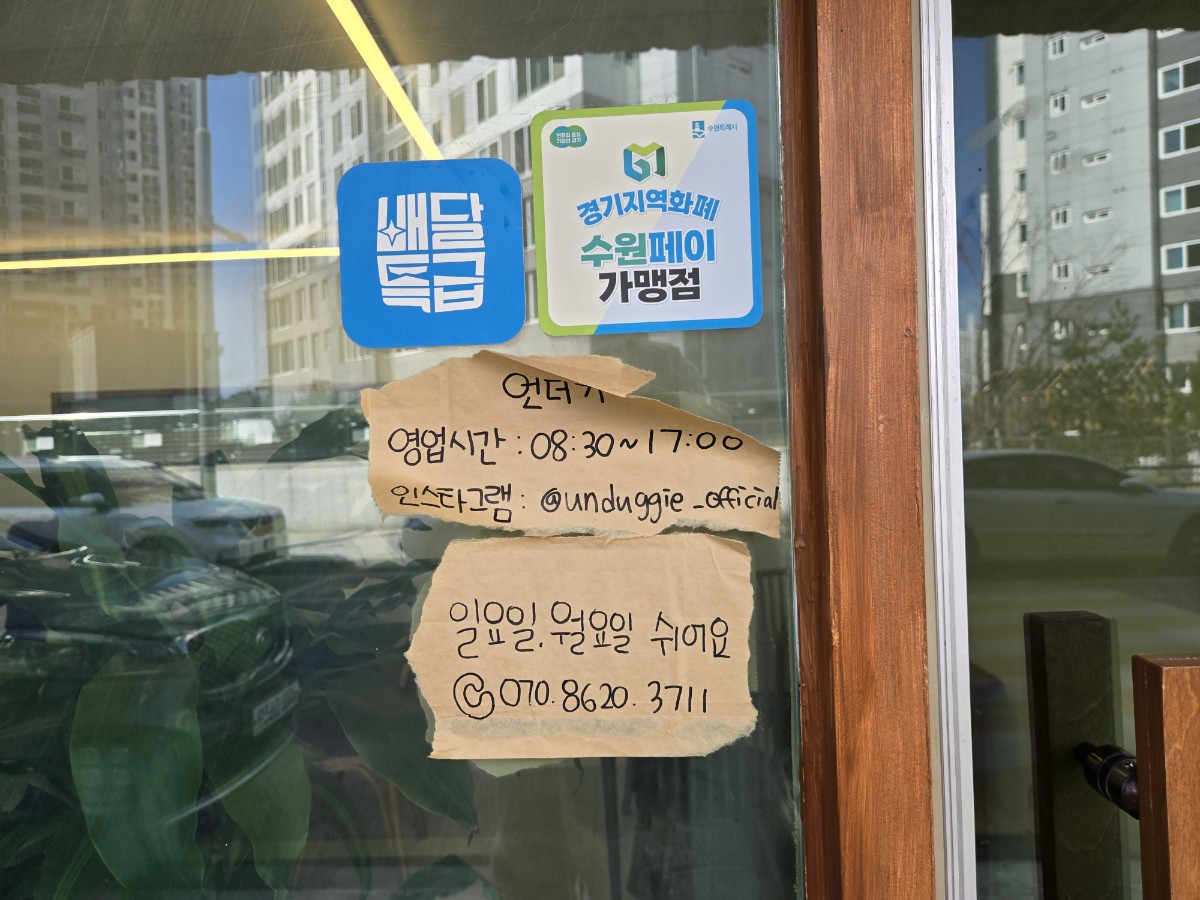 언덕을 올라가야 발견할 수 있는 있는데 카페 이름도 "언더기(UNDUGGIE)"에요. 너무 귀엽죠! 카페 상표도 언덕 모양으로 만들어서 귀여움 2배였어요.