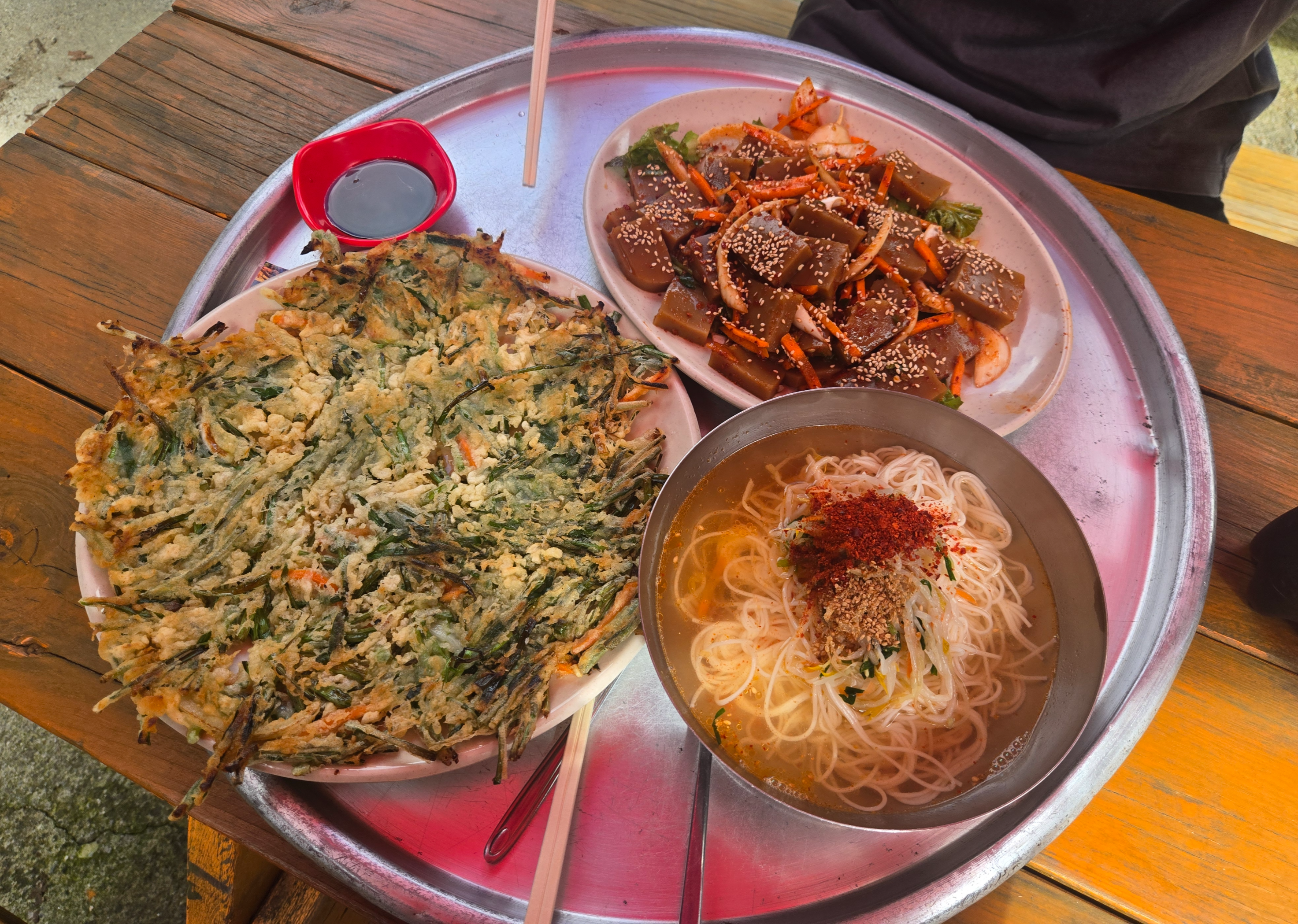 삼성궁 입구에는 카페와 파전 가게가 있어 산책 후 간단히 먹기 좋아요. 파전과 막걸리 조합은 가을 여행의 낭만을 완성해주죠. 따뜻한 커피를 마시며 여유롭게 쉬어가는 것도 추천합니다. 특히 솥뚜껑 파전은 바삭바삭해서 맛있었어요!