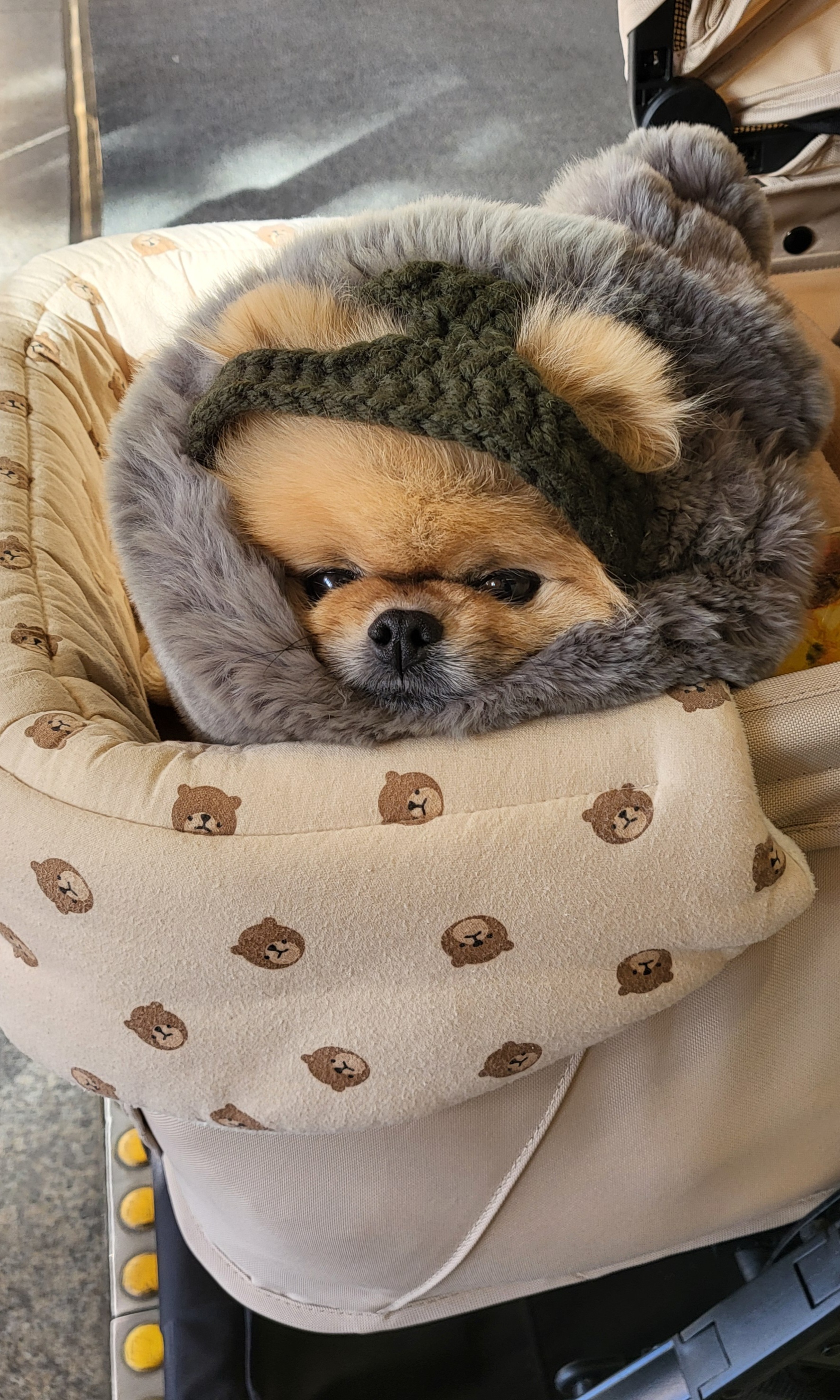 기모 조끼 + 패딩 + 바라클라바 + 개모차 핫팩 조합으로 산책 중이다.